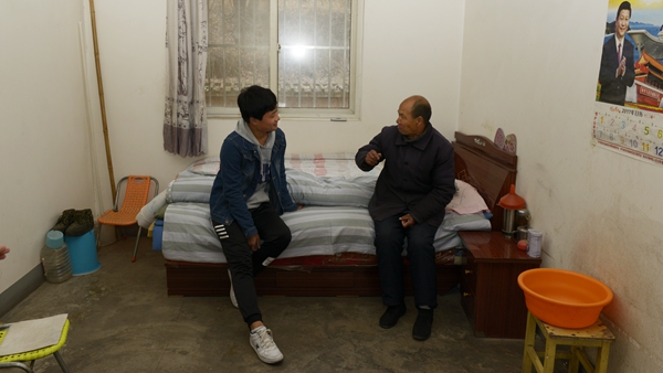 楊斜敬老院坐落在楊斜鎮(zhèn)的一個村莊里,青年志愿服務(wù)隊冒雨來到敬老院。一進(jìn)院子,這些常年生活在這里的孤寡老人們像見到親人般喜出望外,因為經(jīng)常來往,大家很快就和老人們互動起來。同學(xué)們在院子里唱歌、跳舞、說相聲,為老人表演節(jié)目,給這個寧靜的院子帶來了歡聲笑語,吸引了周邊村民前來觀看。管發(fā)亮老人激動地告訴我們,自己今年64歲了,無兒無女,曾經(jīng)在街頭靠乞討生活,在政府的救助下,1992年來到敬老院,過上了有衣穿有飯吃的幸福生活。說到高興處,管發(fā)亮吼起了秦腔,一連唱起《社會主義好》《回娘家》等歌曲。