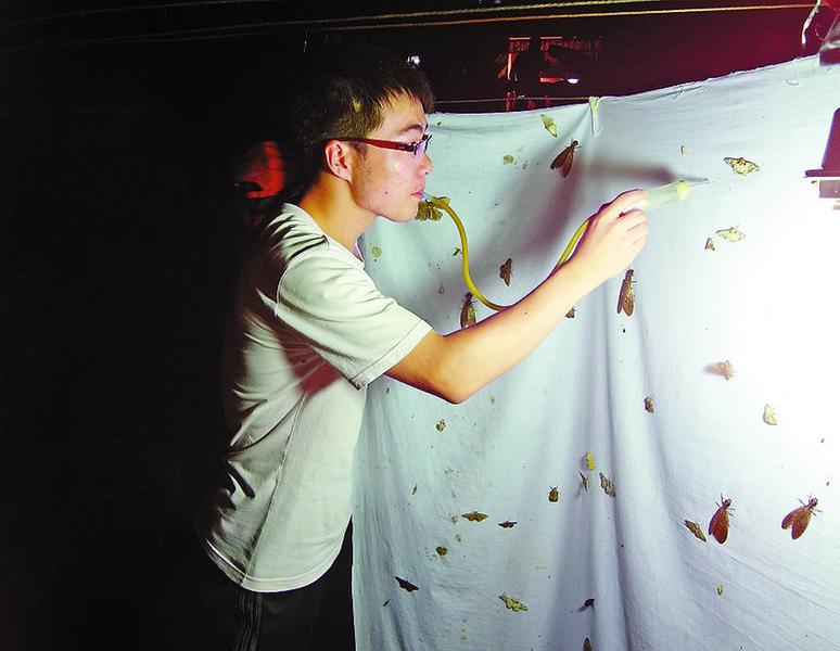 2011年,浙江天目山,王洋在夜間誘集昆蟲