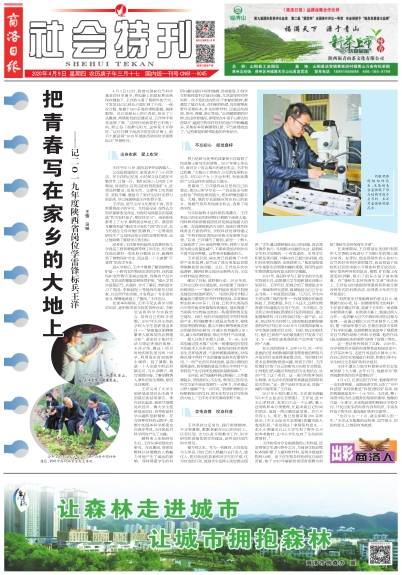 4月9日,《商洛日?qǐng)?bào)》(社會(huì)特刊)在頭版以整版版面專(zhuān)題報(bào)道了2019年度陜西省崗位學(xué)雷鋒標(biāo)兵——我校青年教師王洋在商洛大地上書(shū)寫(xiě)青春,用自己的專(zhuān)業(yè)和科研特長(zhǎng)助推商洛經(jīng)濟(jì)發(fā)展的先進(jìn)事跡。報(bào)道全文如下: