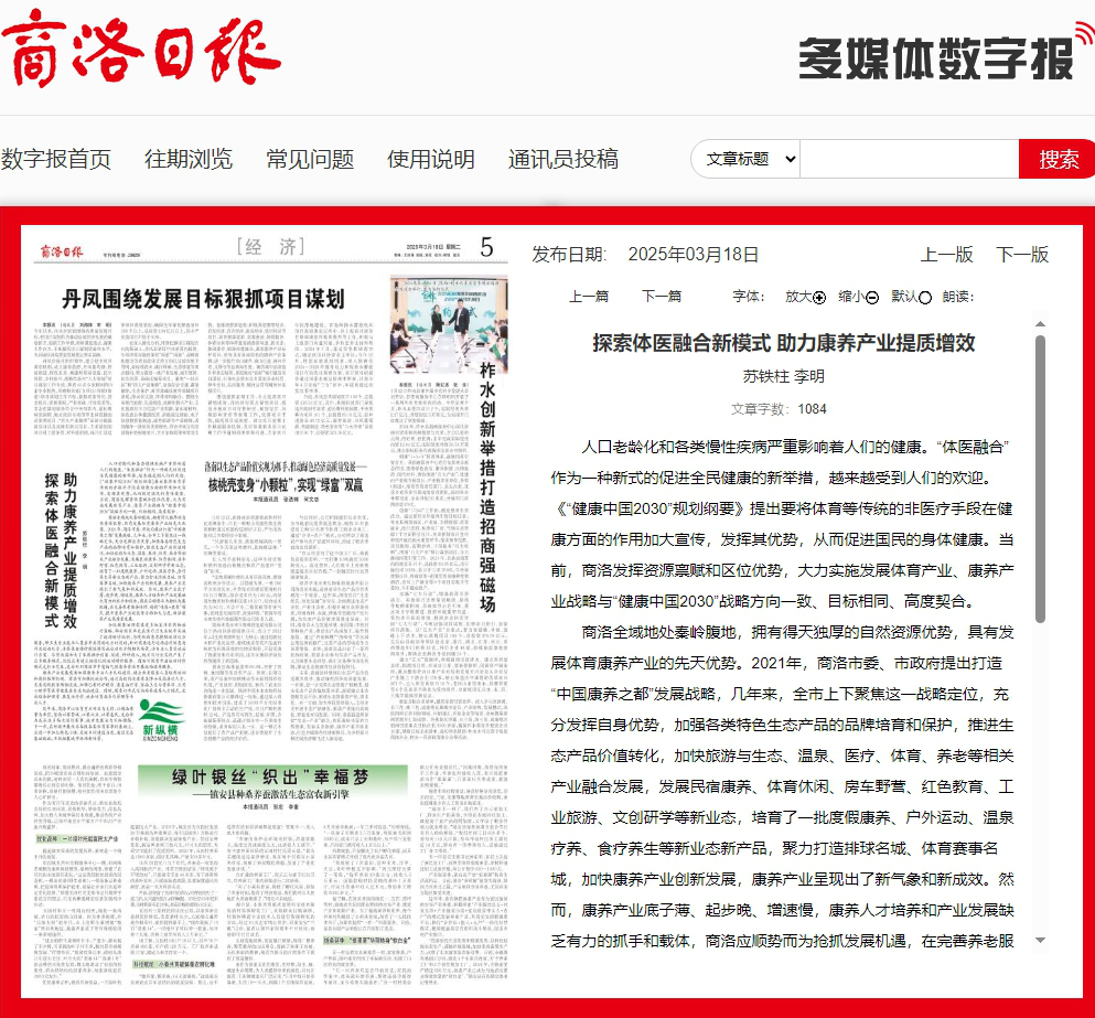商洛全域地處秦嶺腹地,擁有得天獨(dú)厚的自然資源優(yōu)勢,具有發(fā)展體育康養(yǎng)產(chǎn)業(yè)的先天優(yōu)勢。2021年,商洛市委、市政府提出打造“中國康養(yǎng)之都”發(fā)展戰(zhàn)略,幾年來,全市上下聚焦這一戰(zhàn)略定位,充分發(fā)揮自身優(yōu)勢,加強(qiáng)各類特色生態(tài)產(chǎn)品的品牌培育和保護(hù),推進(jìn)生態(tài)產(chǎn)品價值轉(zhuǎn)化,加快旅游與生態(tài)、溫泉、醫(yī)療、體育、養(yǎng)老等相關(guān)產(chǎn)業(yè)融合發(fā)展,發(fā)展民宿康養(yǎng)、體育休閑、房車野營、紅色教育、工業(yè)旅游、文創(chuàng)研學(xué)等新業(yè)態(tài),培育了一批度假康養(yǎng)、戶外運(yùn)動、溫泉療養(yǎng)、食療養(yǎng)生等新業(yè)態(tài)新產(chǎn)品,聚力打造排球名城、體育賽事名城,加快康養(yǎng)產(chǎn)業(yè)創(chuàng)新發(fā)展,康養(yǎng)產(chǎn)業(yè)呈現(xiàn)出了新氣象和新成效。然而,康養(yǎng)產(chǎn)業(yè)底子薄、起步晚、增速慢,康養(yǎng)人才培養(yǎng)和產(chǎn)業(yè)發(fā)展缺乏有力的抓手和載體,商洛應(yīng)順勢而為搶抓發(fā)展機(jī)遇,在完善養(yǎng)老服務(wù)保障、創(chuàng)新“體醫(yī)+康養(yǎng)”模式、提升康養(yǎng)產(chǎn)業(yè)效能等方面加大力度,助推康養(yǎng)產(chǎn)業(yè)高質(zhì)量發(fā)展。