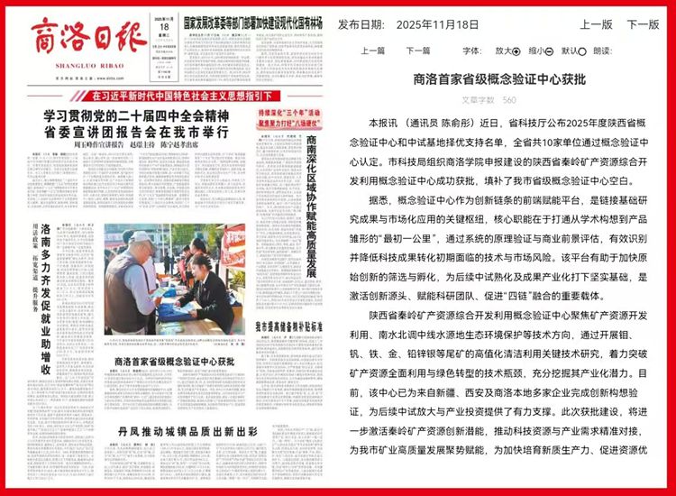 本報訊 (通訊員 陳俞彤)近日,省科技廳公布2025年度陜西省概念驗證中心和中試基地?fù)駜?yōu)支持名單,全省共10家單位通過概念驗證中心認(rèn)定。市科技局組織商洛學(xué)院申報建設(shè)的陜西省秦嶺礦產(chǎn)資源綜合開發(fā)利用概念驗證中心成功獲批,填補(bǔ)了我市省級概念驗證中心空白。