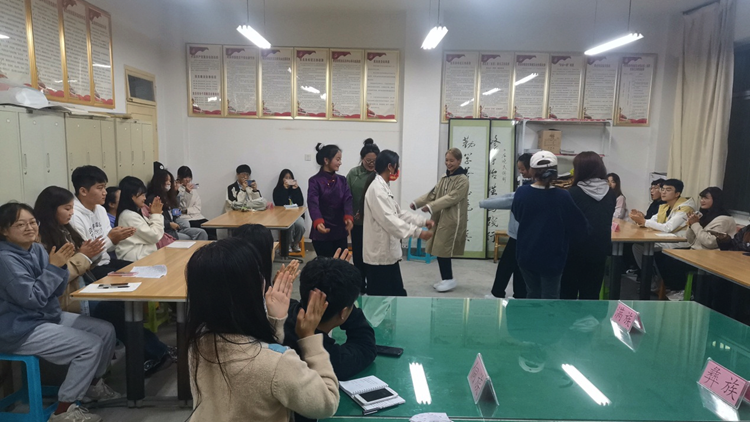 在互動(dòng)交流環(huán)節(jié),學(xué)院回、藏、侗、土家、蒙古、苗、東鄉(xiāng)、滿的9個(gè)少數(shù)民族學(xué)生,分別介紹了各自民族文化習(xí)俗、生活習(xí)慣等,并表演了精彩的少數(shù)民族舞蹈。