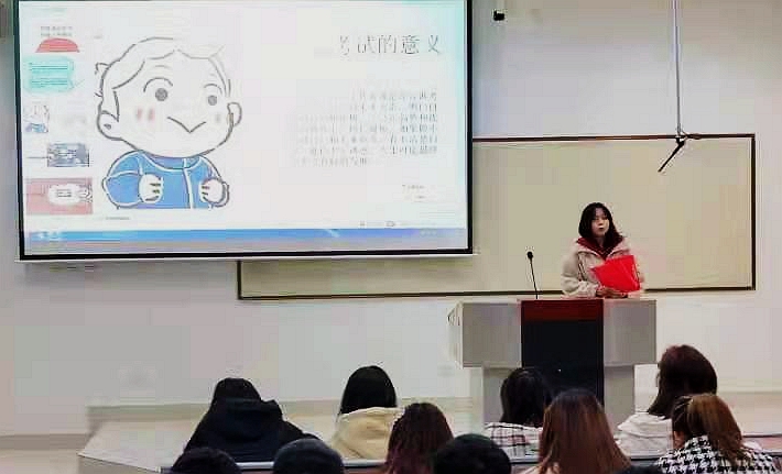 會上,主講學生圍繞端正考試態(tài)度、遵守考試制度、嚴守考場紀律等方面進行了誠信教育宣講,呼吁同學們嚴于律己、誠信應(yīng)考,在各類考試中將誠信付諸于實際行動。學生李歡歡結(jié)合學生手冊中關(guān)于考試違紀的處理辦法,重點介紹了考試中的注意事項。學生孫靜怡以高考違紀、研究生考試作弊等真實事件為案例,向大家深刻剖析了考試違紀的危害和法律后果。會議最后,全體同學起立集體宣誓,誠信考試、誠實做人,爭做新時代合格大學生。