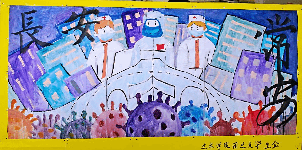 西安疫情暴發(fā)以來(lái),校藝術(shù)學(xué)院團(tuán)總支積極動(dòng)員廣大團(tuán)員學(xué)生踴躍投身抗擊疫情主題文藝創(chuàng)作。學(xué)院學(xué)生積極響應(yīng),創(chuàng)作了以“防疫”為主題的展板,用繪畫(huà)的方式向白衣天使致敬、為一線英雄禮贊,積極傳播正能量,為堅(jiān)決打贏疫情防控阻擊戰(zhàn)增添信心與力量。