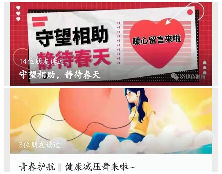 調(diào)節(jié)心理狀態(tài),促進(jìn)學(xué)生身心健康。學(xué)院根據(jù)學(xué)生身心發(fā)展特點和教育規(guī)律,通過向?qū)W生宣傳普及心理健康知識、推薦《減壓舞》及開展“元旦暖心留言”等活動,調(diào)節(jié)學(xué)生情緒、紓解壓力,增強學(xué)生抗逆力,為疫情期間學(xué)生心理健康保駕護(hù)航。