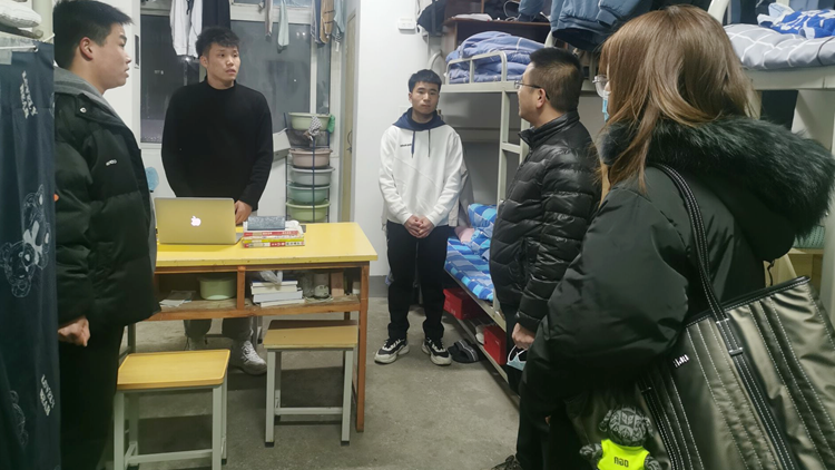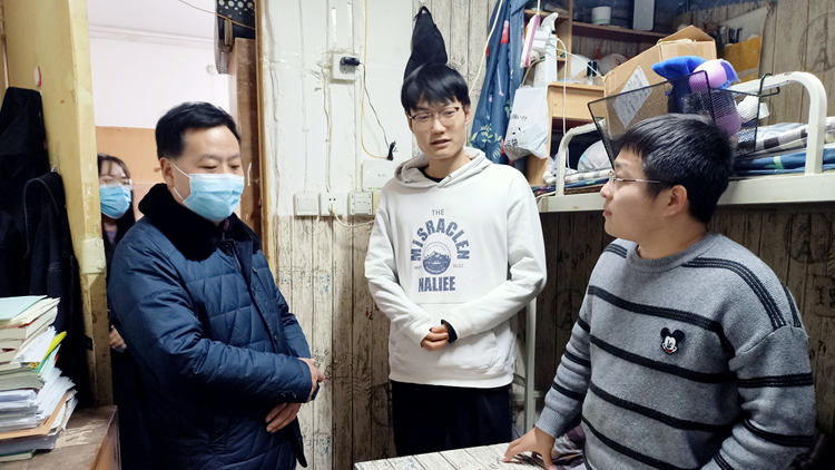 深入宿舍,問(wèn)暖噓寒。為了解學(xué)生返校后的生活與住宿情況,22日晚8點(diǎn),數(shù)計(jì)學(xué)院黨總支書(shū)記廉明,黨總支副書(shū)記、副院長(zhǎng)劉愛(ài)軍帶領(lǐng)全體學(xué)工人員深入學(xué)生宿舍走訪,為返校學(xué)生送去關(guān)懷與溫暖。走訪期間,數(shù)計(jì)學(xué)院領(lǐng)導(dǎo)對(duì)寢室衛(wèi)生及安全進(jìn)行了檢查,要求同學(xué)們盡快調(diào)整心態(tài)投入到新學(xué)期的學(xué)習(xí)和生活,叮囑同學(xué)們?nèi)缬龅缴罨驅(qū)W習(xí)上的問(wèn)題要及時(shí)向?qū)W院反映,學(xué)院會(huì)盡全力幫助大家排憂解難。學(xué)院親切的問(wèn)候和細(xì)心周到的服務(wù),使同學(xué)們倍感溫暖。