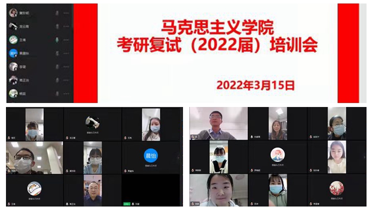 為助力我院考研學(xué)子科學(xué)高效準(zhǔn)備復(fù)試工作,讓考研學(xué)子心中有底氣,臉上精氣。3月15日晚,馬克思主義學(xué)院召開線上考研復(fù)試培訓(xùn)會,為即將參加考研復(fù)試學(xué)生提供全方位、多角度指導(dǎo)。馬克思主義學(xué)院院長蔣正治、黨總支書記劉麥霞、副院長武永耿、學(xué)工辦主任李燕燕,青年教師劉健、王倩、葉肖,2021屆畢業(yè)生(現(xiàn)就讀于蘭州理工大學(xué))王宇杰和本次上線的23名學(xué)生參加了會議。會議由武永耿主持。