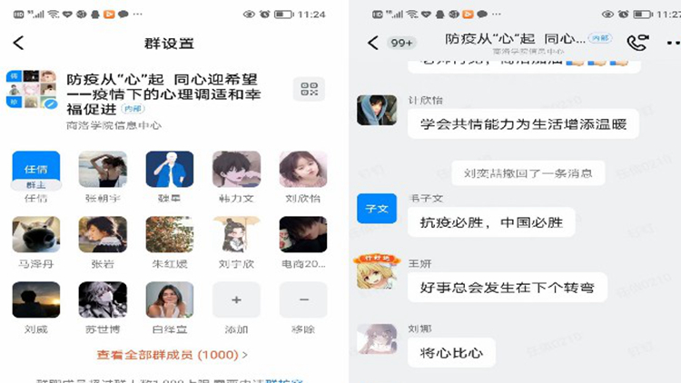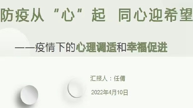 任倩老師分別從“感受樂觀的力量”、“ABCDE樂觀思維模式”、“心理調(diào)適建議”三個(gè)方面結(jié)合學(xué)生學(xué)習(xí)生活現(xiàn)狀,為1000余名在線師生進(jìn)行了生動的心理健康知識講解。就疫情突發(fā),校園臨時(shí)封閉管理期內(nèi)可能產(chǎn)生的焦慮多疑、惶恐不安、悲傷抑郁等心理問題提出了調(diào)試方法。通過線上互動讓大家了解“共情”,喚醒“共情”,傳遞“共情”,以積極健康的心態(tài)面對生活,共克時(shí)艱!
