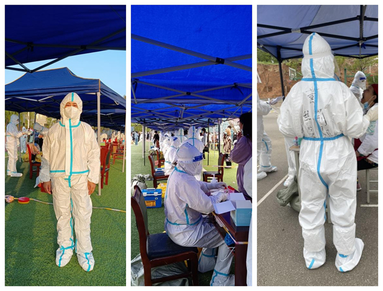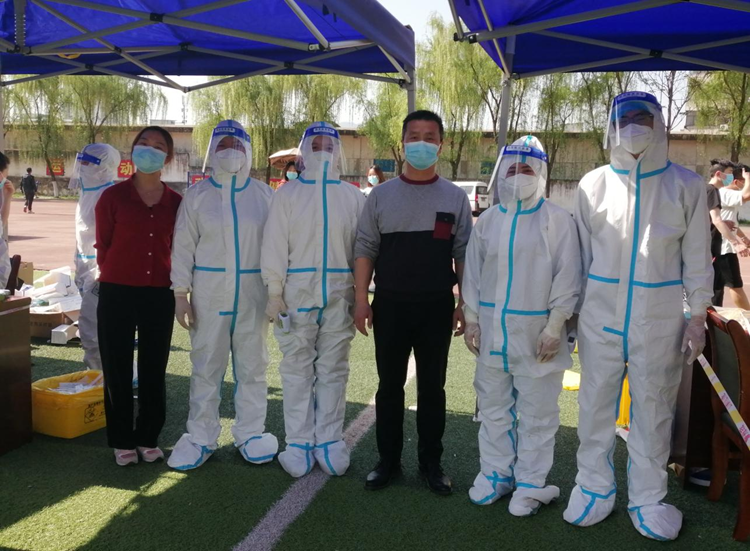 做好志愿服務(wù),發(fā)揮先鋒作用。在學(xué)校大操場,鄧淑紅、楊鵬飛、李娜娜等教師身穿防護(hù)服,克服酷暑,連續(xù)參與全校學(xué)生核酸檢測任務(wù);在學(xué)校小操場,黃荊晶、周方舟、丁燕琳等教師引導(dǎo)廣大教職工有序排隊、信息錄入、掃碼測溫;南院家屬區(qū),郭磊磊老師指導(dǎo)幫助退休教職工和年長家屬掃碼、填報相關(guān)個人信息;青年教師公寓檢測區(qū)采樣點,王程老師協(xié)助采樣工作人員開展測溫、清理工作臺、現(xiàn)場消殺。