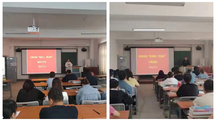 為進一步做好2022屆畢業(yè)生就業(yè)創(chuàng)業(yè)工作,持續(xù)提升就業(yè)指導服務水平,更好提振畢業(yè)生就業(yè)信心,5月3日下午,生物學院舉辦“講政策、促就業(yè)”專題講座和“強信心、做表率”就業(yè)分享會在丹江校區(qū)順利舉行。學院黨委副書記趙永平、畢業(yè)班輔導員王姍、張俊華及80余名畢業(yè)生參加了分享會。