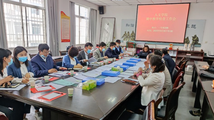 5月9日下午,黨委副書記彭虎軍一行9人深入人文學(xué)院進(jìn)行期中教學(xué)專項(xiàng)檢查。人文學(xué)院黨政領(lǐng)導(dǎo)班子成員、督導(dǎo)組成員、各系負(fù)責(zé)人以及部分教師代表參加專項(xiàng)檢查座談會(huì)。院長(zhǎng)張文諾作了專題匯報(bào)并陪同檢查了相關(guān)教學(xué)資料。