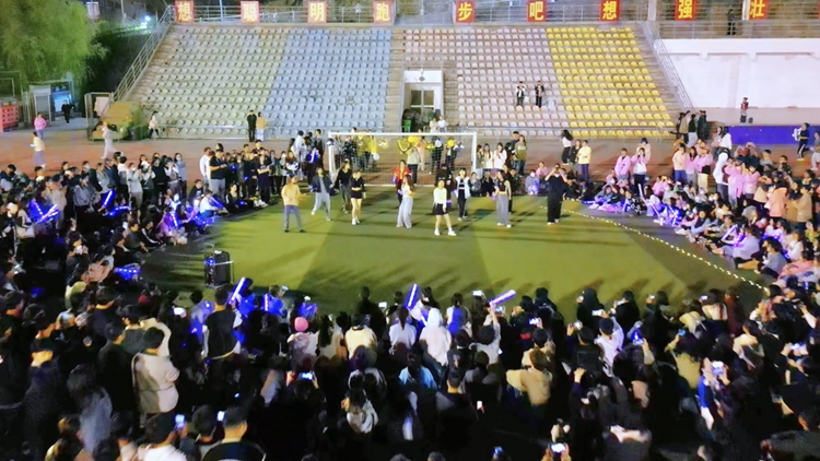 大學(xué)生藝術(shù)團(tuán)攜手音樂(lè)協(xié)會(huì)在操場(chǎng)舉辦了“‘鋒’華正茂恰少年”主題活動(dòng),熱烈的舞蹈《拉丁》讓現(xiàn)場(chǎng)氣氛迅速活躍起來(lái)。一曲《烏梅子醬》表達(dá)出甜蜜酸澀的青春戀愛(ài)味道,歌曲《遇到》述說(shuō)在青春年華經(jīng)歷的美好故事,《現(xiàn)代舞串燒》讓人心潮澎湃……豐富多彩的節(jié)目為現(xiàn)場(chǎng)觀眾帶來(lái)了一場(chǎng)視覺(jué)與聽(tīng)覺(jué)的盛宴。不同于以往單一的表演形式,此次活動(dòng)還穿插了游戲互動(dòng)環(huán)節(jié),你放我猜的小游戲激發(fā)了觀眾們的熱情,在倒數(shù)聲中觀眾迅速搶麥回答,現(xiàn)場(chǎng)氣氛瞬間被推向高潮,贏得一片歡呼吶喊聲。