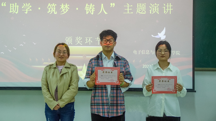 參賽選手們以“感恩資助 助學(xué)圓夢(mèng)”、“資助育人心 筑夢(mèng)向未來(lái)”、“感恩資助 筑夢(mèng)成長(zhǎng)”等為題進(jìn)行了演講角逐。最終,夏嘉成獲一等獎(jiǎng),胡豪楠、李鑫鋒獲二等獎(jiǎng),袁怡萍、毛藝幀、張嘉晶獲三等獎(jiǎng)。