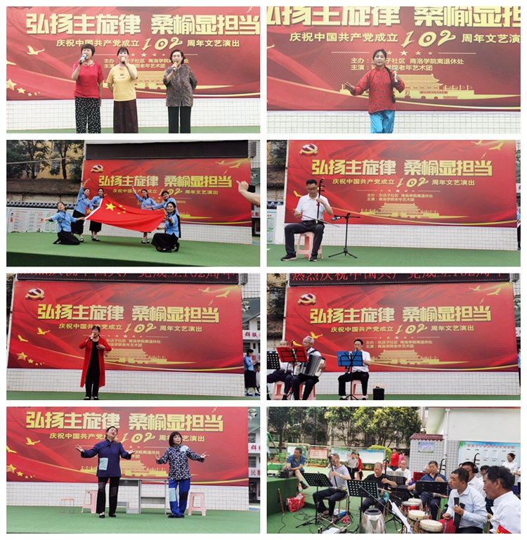為慶祝建黨102周年,展示我校離退休黨員干部愛黨之情、向黨之心,激勵廣大老同志不忘初心跟黨走,7月1日上午,離退休職工工作處聯(lián)合東店子社區(qū)在社區(qū)院內(nèi)開展“弘揚主旋律,桑榆顯擔(dān)當(dāng)”文藝演出。