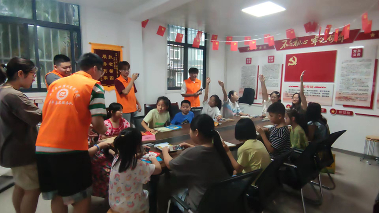 傳承文化樂開顏。在社區(qū)工作人員的協(xié)助下,實踐隊成員開展了“弘揚傳統(tǒng)文化,增強文化自信”的系列活動。首先,針對小朋友們在閱讀中的錯誤習慣進行糾偏改正。隨后,以“秋”為主題展開飛花令比拼,小朋友們興致盎然,紛紛說出自己所學到的詩句。最后,實踐隊成員結合“長安三萬里”這部電影,向小朋友們分享了李白的生平、唐詩的流派與發(fā)展。