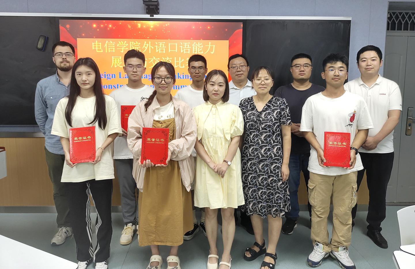 為提高學(xué)生外語(yǔ)應(yīng)用能力,引導(dǎo)學(xué)生用責(zé)任與擔(dān)當(dāng)講好中國(guó)故事,傳播好中國(guó)聲音,成為具有家國(guó)情懷、國(guó)際視野和全球勝任力的新時(shí)代好青年,9月8日,電信學(xué)院舉辦以“講好中國(guó)故事,展現(xiàn)青春風(fēng)采”為主題的學(xué)生外語(yǔ)口語(yǔ)能力展示與交流活動(dòng)。電信學(xué)院院長(zhǎng)袁訓(xùn)鋒出席活動(dòng)。加拿大籍外教Anton博士,中外合作辦學(xué)項(xiàng)目共課教師楊彪、張寧、石玉、孫靜擔(dān)任評(píng)委。