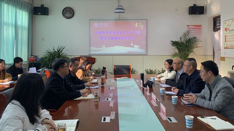 蔣正治介紹了我校馬克思主義學(xué)院的辦學(xué)特色、學(xué)科建設(shè)、師資隊(duì)伍建設(shè)、人才培養(yǎng)模式等基本情況,分享了學(xué)院近年來在思想政治教育VR虛擬實(shí)驗(yàn)室建設(shè)及教研方面成果。雙方圍繞審核評(píng)估、教育教學(xué)、學(xué)生培養(yǎng)、教師研修、黨建工作等方面討論交流。