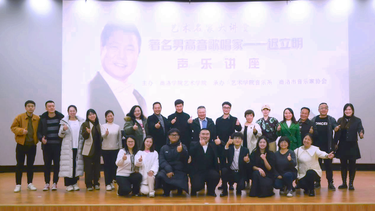 11月21日,藝術學院“藝術名家大講堂”首期開講,邀請著名男高音歌唱家、國家一級演員、歌劇表演藝術家遲立明為藝術學院師生作了兩場聲樂講座。副校長劉寶盈出席活動并為遲立明頒發(fā)我校兼職教授聘書。藝術學院院長李世鵬,副院長劉志華,音樂系全體師生,商洛市音協(xié)人員以及部分校外音樂工作者觀摩了講座。
