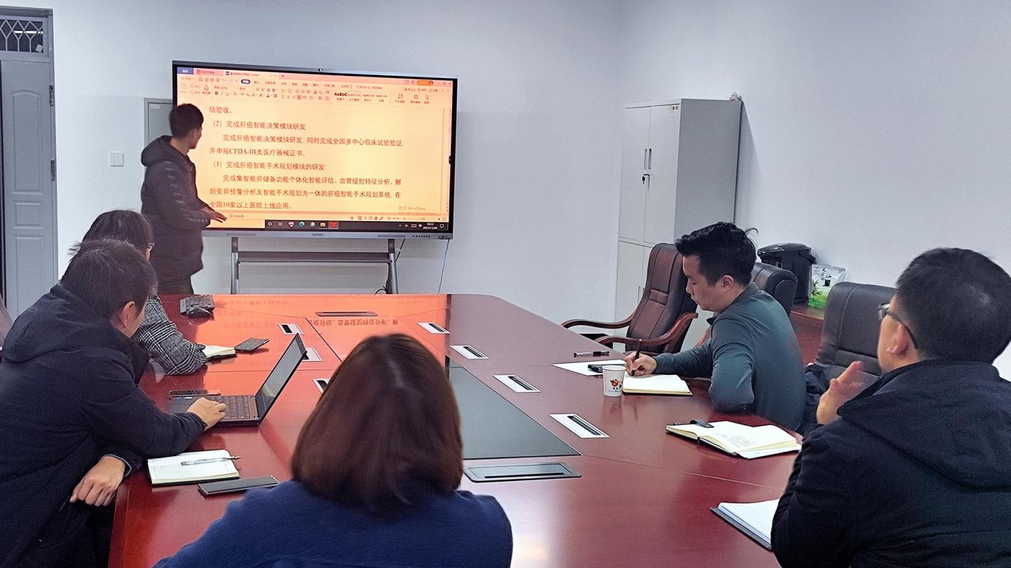 近日,電信學(xué)院在丹江校區(qū)召開秦創(chuàng)原引用高層次創(chuàng)新創(chuàng)業(yè)人才項(xiàng)目校企合作推進(jìn)會(huì)。西安智診智能科技有限公司總經(jīng)理王博,電信學(xué)院院長袁訓(xùn)鋒、副院長李亞文,秦創(chuàng)原引用高層次創(chuàng)新創(chuàng)業(yè)人才項(xiàng)目《基于深度三維重建的肝癌智能決策與手術(shù)規(guī)劃系統(tǒng)研發(fā)》負(fù)責(zé)人江維博士及相關(guān)教師參加會(huì)議。會(huì)議由袁訓(xùn)鋒主持。