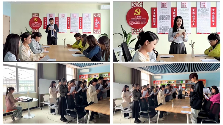 4月10日,學(xué)生第二黨支部開展“以文化之力,作答何以中國”學(xué)習(xí)交流活動(dòng)。黨員代表唐楠楠、韓雨馨帶領(lǐng)大家朗讀了《青春中國》《永遠(yuǎn)跟黨走》《如果信仰有顏色》等優(yōu)秀紅色經(jīng)典篇目?;顒?dòng)期間,全體黨員認(rèn)真學(xué)習(xí)了習(xí)近平總書記關(guān)于推進(jìn)社會(huì)主義文化強(qiáng)國建設(shè)的重要論述,入黨積極分子分享了學(xué)習(xí)感悟。全體師生合唱《我和我的祖國》,將活動(dòng)氛圍推向了高潮,通過歌聲表達(dá)出對黨、對祖國的無限贊美和滿腔熱愛。