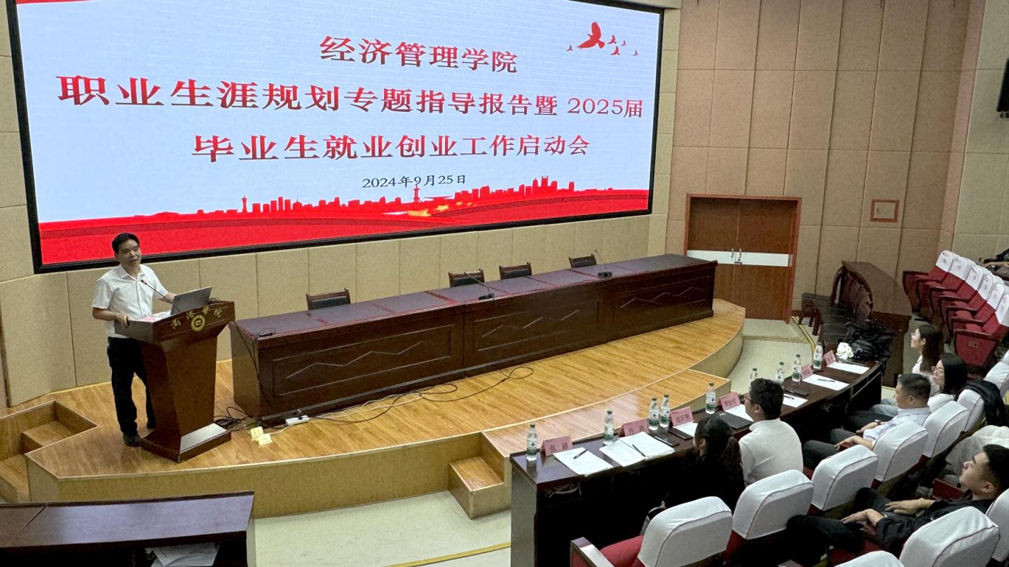 為引導(dǎo)2025屆畢業(yè)生正確認(rèn)識就業(yè)形勢,推動畢業(yè)生實現(xiàn)高質(zhì)量就業(yè),9月25日下午,經(jīng)濟(jì)管理學(xué)院舉辦職業(yè)生涯規(guī)劃專題指導(dǎo)報告暨2025屆畢業(yè)生就業(yè)創(chuàng)業(yè)工作啟動會。石羊集團(tuán)副總裁、長安花糧油股份有限公司董事劉恒,學(xué)院黨委副書記賈長安,長安花糧油股份有限公司相關(guān)人員以及經(jīng)管學(xué)院畢業(yè)班輔導(dǎo)員、全體2025屆畢業(yè)生參加會議。動員會由賈長安主持。