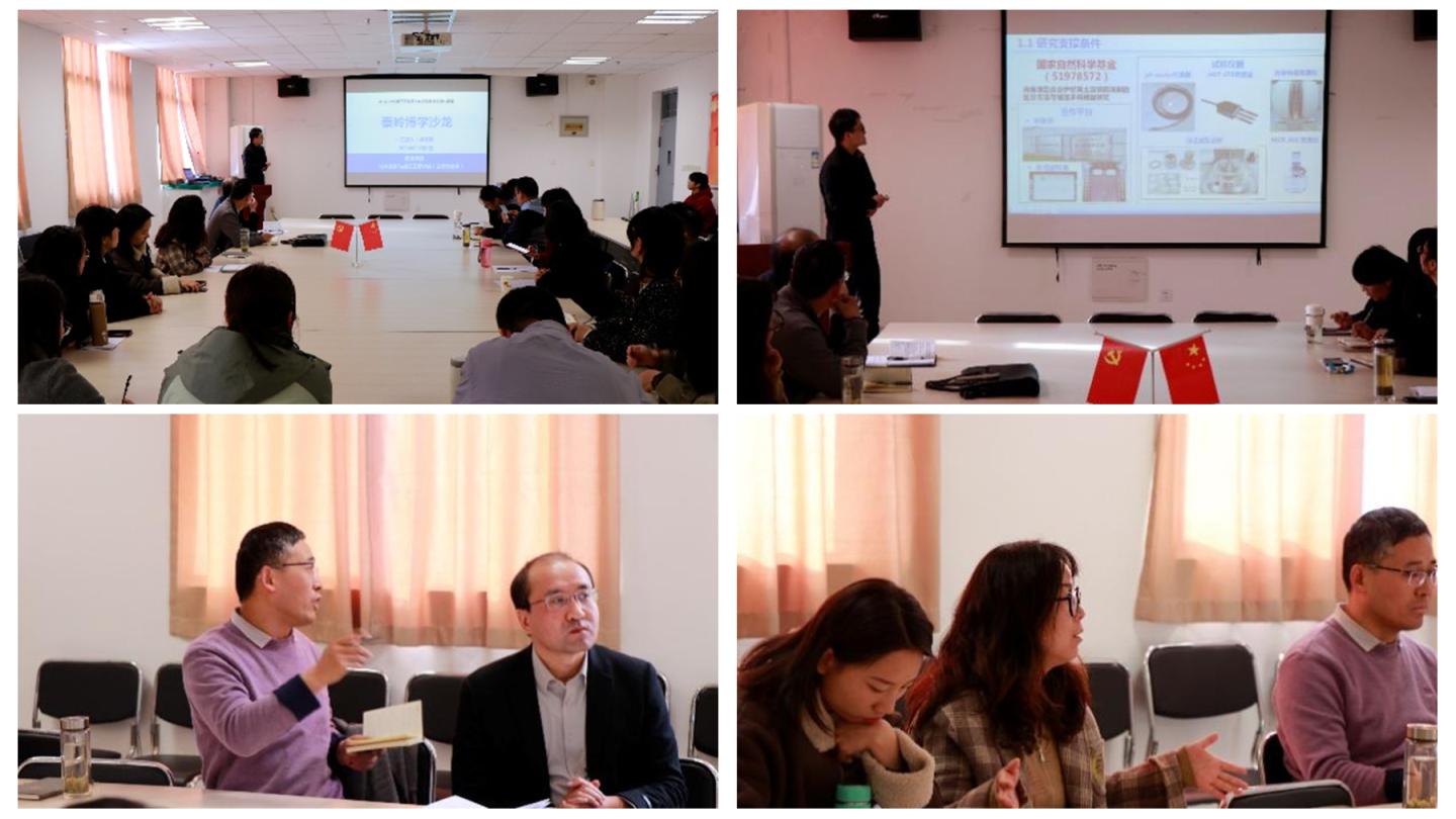 在首場活動中工程管理系梁志超博士進行了“水-鹽-熱作用下伊犁黃土的凍結(jié)及流變演化規(guī)律”的主題發(fā)言,梁志超分別從研究支撐條件、研究背景、研究成果及未來展望四個方面對水-鹽-熱作用下伊利黃土的凍結(jié)及流變演化規(guī)律進行了分享。針對梁志超的研究內(nèi)容,米文靜和劉國棟兩位博士分別進行了交流發(fā)言,其余老師也積極交流、討論。同時,老師們結(jié)合近期個人在閱讀文獻、撰寫論文、投稿、申報項目、在研項目中存在的問題和所思所想進行交流。學(xué)術(shù)活動氛圍非?;钴S、輕松。