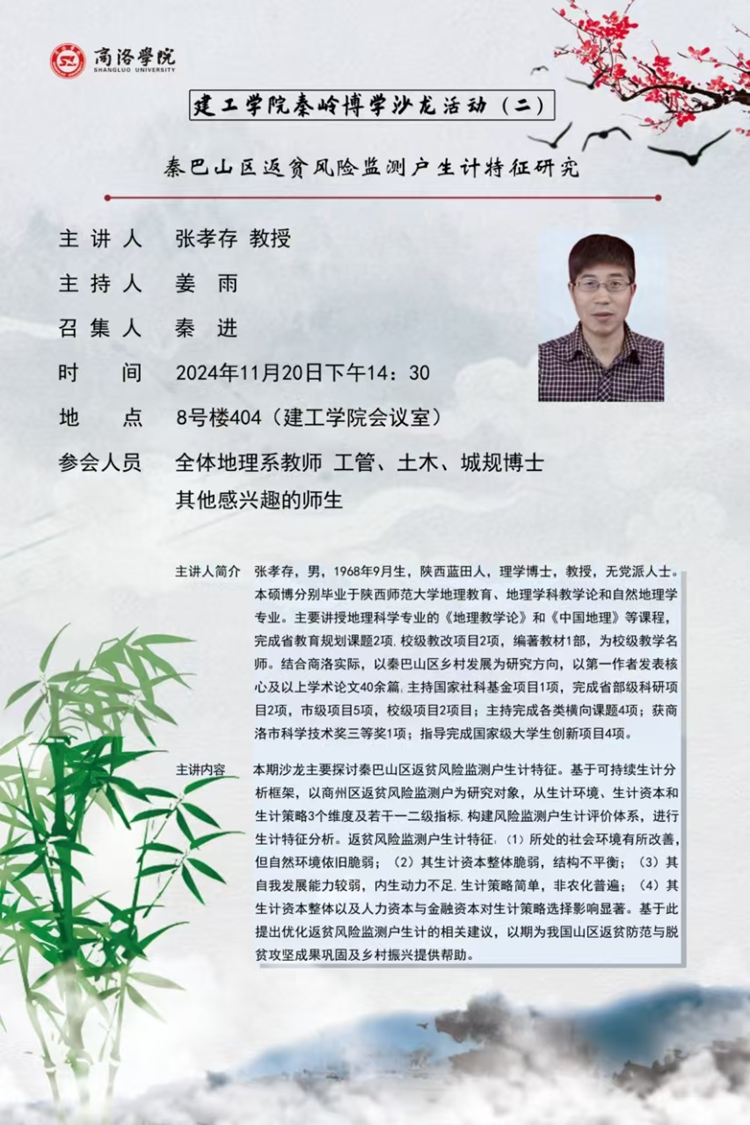 11月20日,城鄉(xiāng)規(guī)劃與建筑工程學(xué)院在8號樓404會議室舉辦2024年第二期“秦嶺博學(xué)沙龍”學(xué)術(shù)活動。學(xué)院地理科學(xué)系全體教師及其他專業(yè)教師代表參加活動。活動由地理系系主任秦進(jìn)召集,城鄉(xiāng)規(guī)劃系系主任姜雨主持。