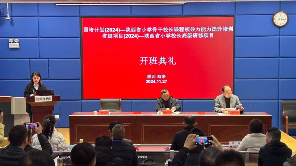 11月27日上午,國培計劃2024年陜西省小學(xué)骨干校長課程領(lǐng)導(dǎo)力能力提升項目、省培小學(xué)校長高級研修培訓(xùn)項目開班典禮在我校八號教學(xué)樓多媒體18隆重舉行。繼續(xù)教育學(xué)院院長付軍昌、培訓(xùn)中心主任王虎及來自全省各地市128名小學(xué)校長參加了開班典禮。