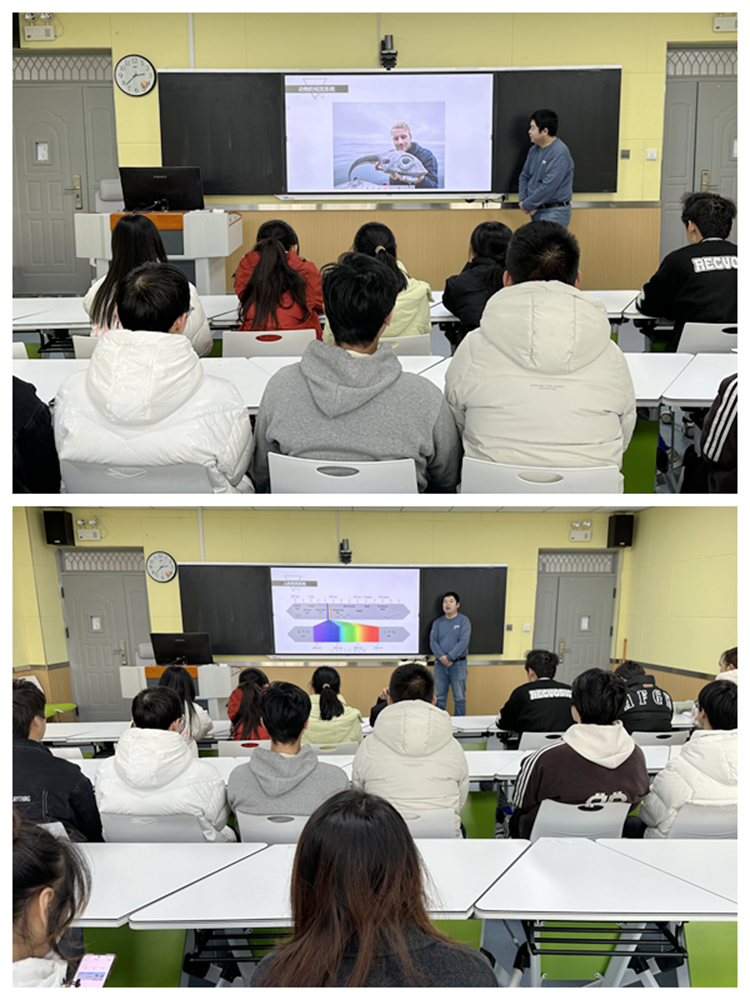 楊彪博士以人類視覺系統(tǒng)的基本結(jié)構(gòu)為切入點(diǎn),深入講解了人眼的結(jié)構(gòu)、色彩感知原理、視覺信息和大腦的交互識(shí)別過程等內(nèi)容,通過生動(dòng)的示意圖和模型展示,讓在場同學(xué)深入直觀地了解了人類視覺形成和識(shí)別的這一神奇現(xiàn)象。