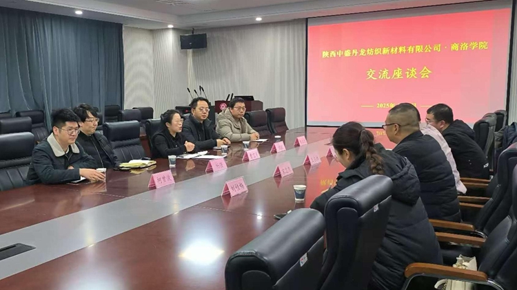 此前,化材學(xué)院劉璇、楊強、柯曾波、李衛(wèi)衛(wèi)等功能性紡織新材料領(lǐng)域科研團隊成員在商洛市循環(huán)經(jīng)濟協(xié)會宋志東和丹鳳高新技術(shù)產(chǎn)業(yè)開發(fā)區(qū)劉園東的陪同下,前往陜西中盛丹龍紡織新材料有限公司進(jìn)行實地參觀考察。團隊成員詳細(xì)了解了該公司2000噸功能性紡織新材料生產(chǎn)線的建設(shè)情況,圍繞生產(chǎn)線設(shè)備、工藝及產(chǎn)品質(zhì)量等方面問題進(jìn)行了深入研討。
