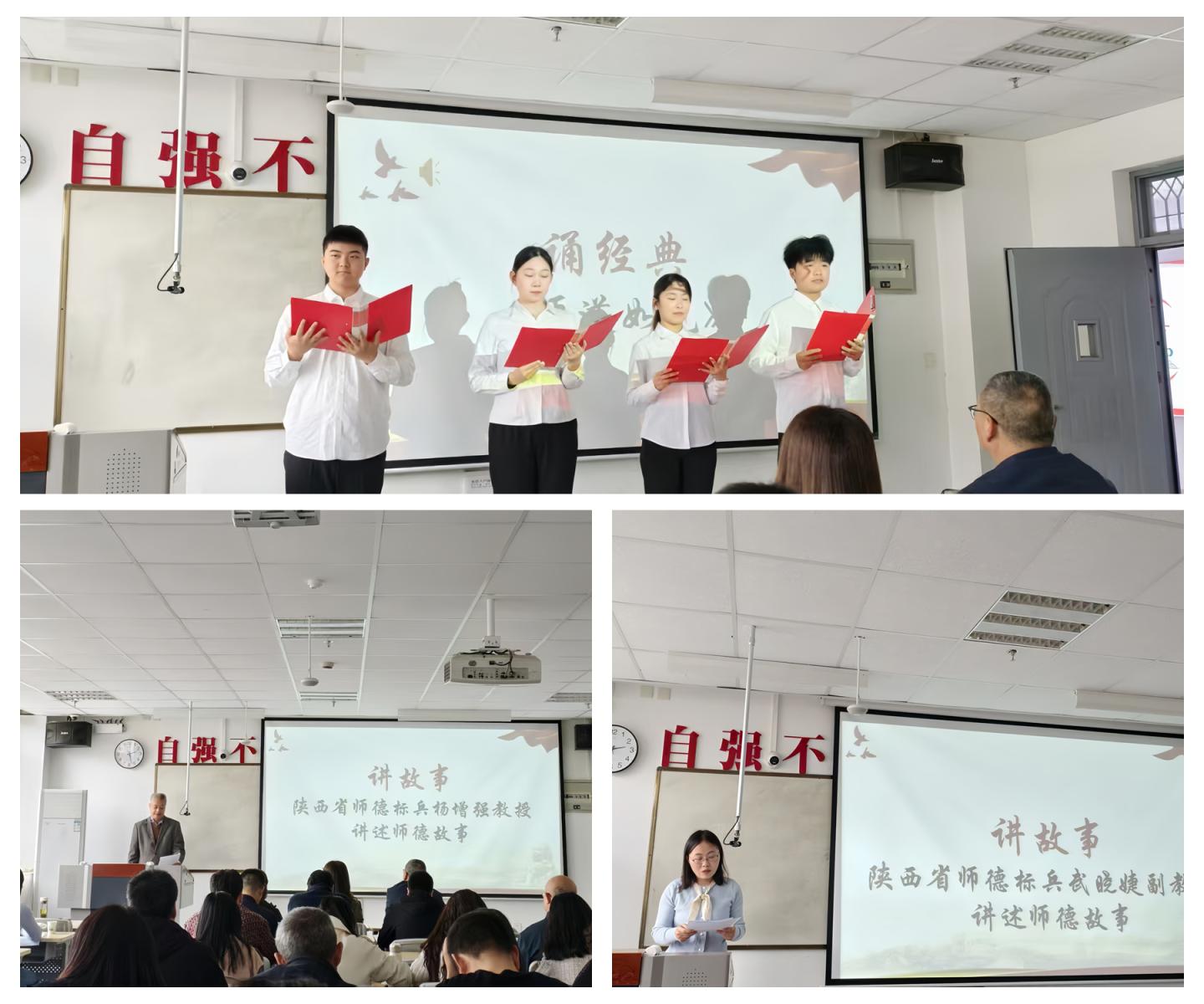 活動(dòng)中,在場師生集體觀看了由中國政法大學(xué)趙慶杰教授主講的《弘揚(yáng)教育家精神,樹立良好師德師風(fēng)》主題報(bào)告,欣賞了我國第一部以思政課教師為題材拍攝的電影《我要當(dāng)教師》主題曲《老師,你好》。陜西省師德標(biāo)兵楊增強(qiáng)教授與武曉捷老師先后圍繞“德潤杏壇 鑄魂育人”主題,以親身經(jīng)歷和所見所聞講述了自己和身邊人的感人故事。
