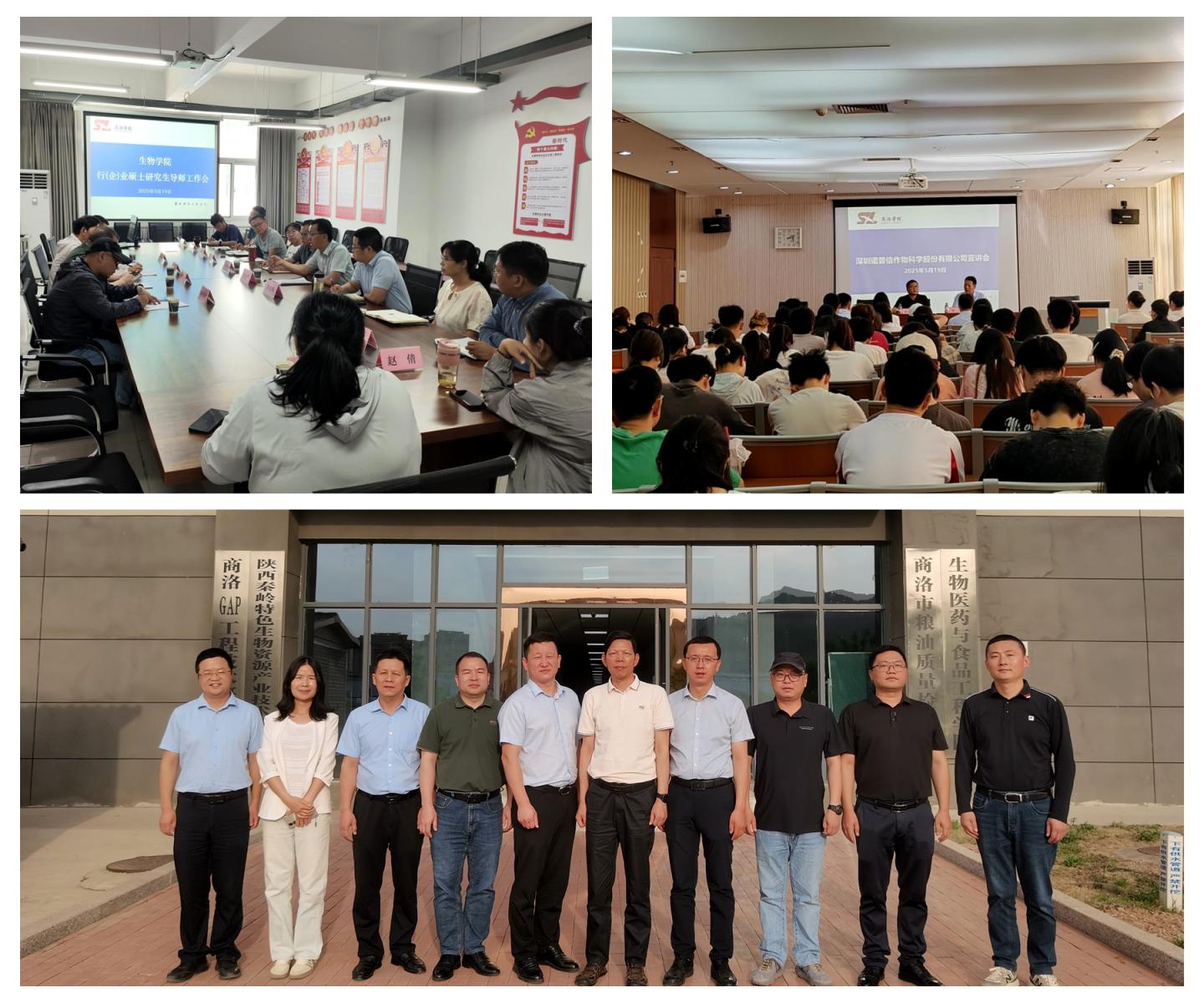 為助推生物與醫(yī)藥專業(yè)學(xué)位碩士點(diǎn)建設(shè),進(jìn)一步促進(jìn)校企深度融合,5月19日,深圳諾普信作物科學(xué)股份有限公司人力資源部程天驕部長(zhǎng)、研究院曹明章博士、黃柯程博士、東莞市瑞德豐生物科技有限公司郭有根總經(jīng)理、陜西標(biāo)正作物科學(xué)有限公司李輝經(jīng)理等一行8人蒞臨生物學(xué)院就碩士點(diǎn)建設(shè)、科研合作、學(xué)生就業(yè)實(shí)習(xí)等事項(xiàng)進(jìn)行座談交流。學(xué)院領(lǐng)導(dǎo)班子和各系主任以及碩士生導(dǎo)師代表參加活動(dòng)。