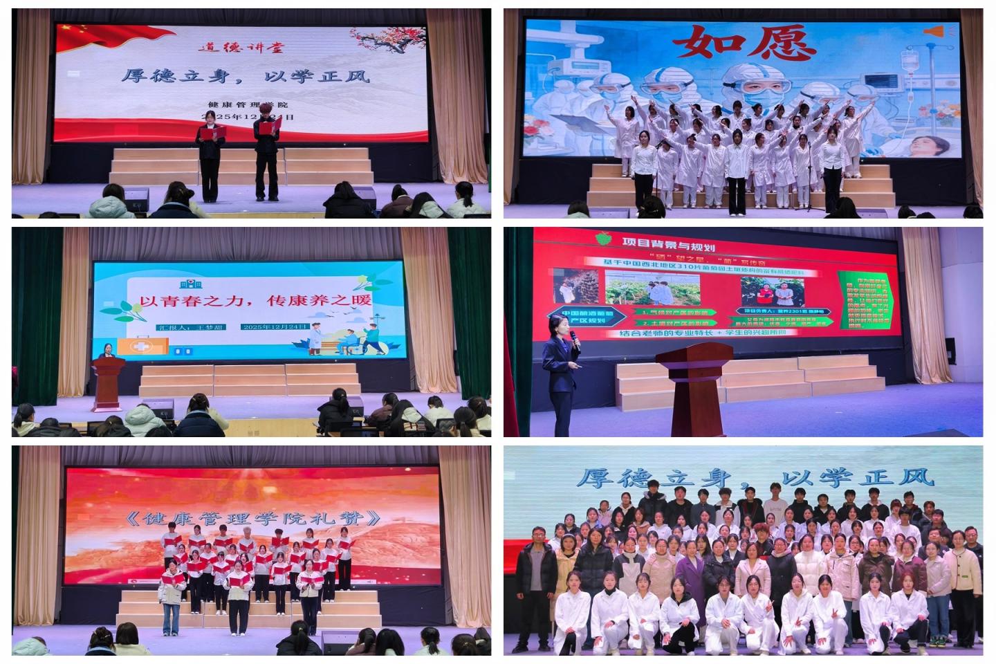 12月24日,健康管理學(xué)院在八號(hào)教學(xué)樓大學(xué)生活動(dòng)中心舉辦“厚德立身,以學(xué)正風(fēng)”主題道德講堂,學(xué)院師生代表300余人參加活動(dòng)。