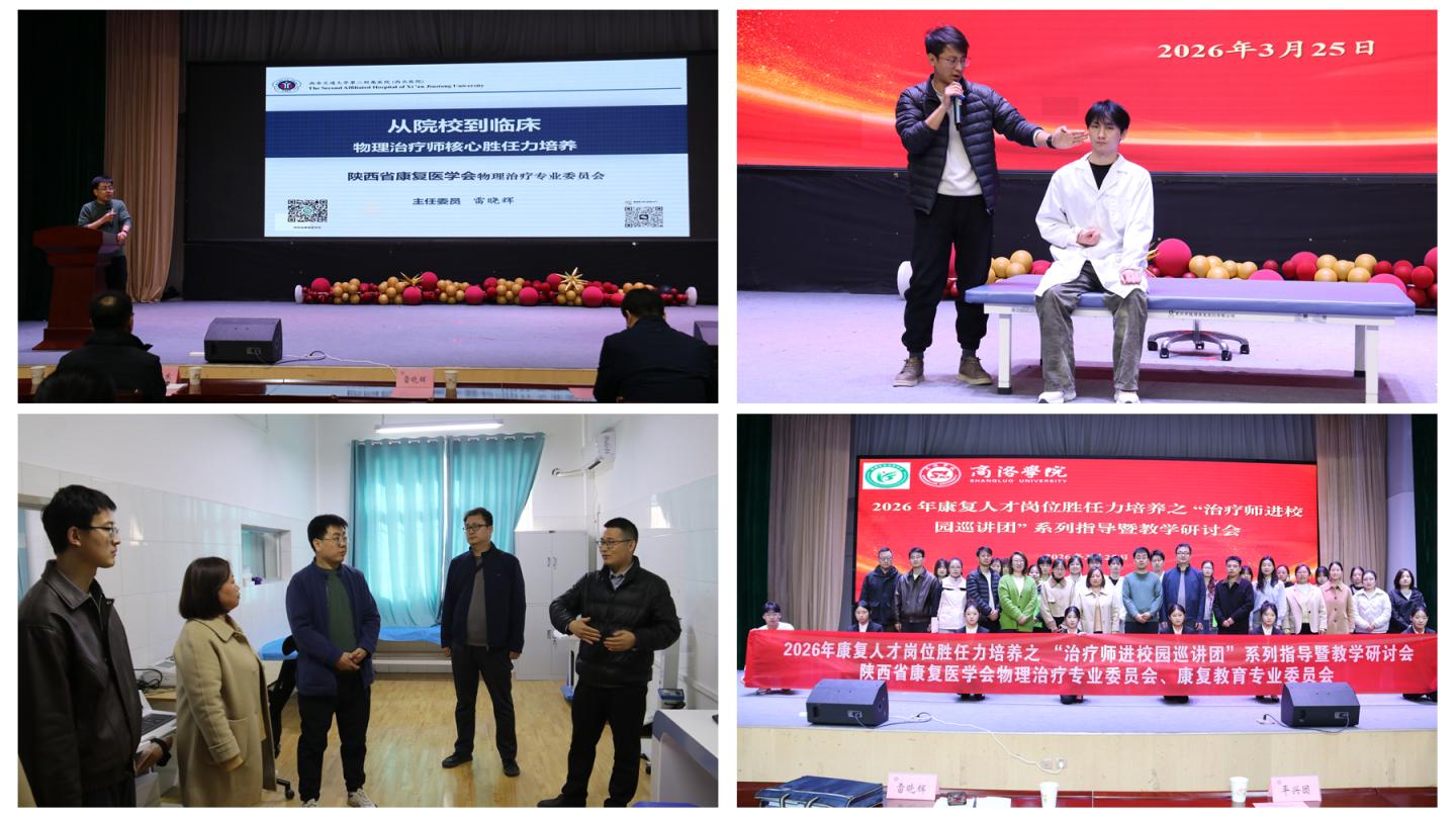 3月25日下午,由陜西省康復(fù)醫(yī)學(xué)會(huì)物理治療專業(yè)委員會(huì)、康復(fù)教育專業(yè)委員會(huì)主辦,健康管理學(xué)院承辦的“從課堂到臨床——賦能康復(fù)治療師崗位勝任力”系列活動(dòng)在8號(hào)樓三樓大學(xué)生活動(dòng)中心舉行。西安交通大學(xué)第二附屬醫(yī)院康復(fù)醫(yī)學(xué)科治療師長(zhǎng)、陜西省康復(fù)醫(yī)學(xué)會(huì)理事會(huì)常務(wù)理事兼秘書、物理治療專業(yè)委員會(huì)主任委員雷曉輝,西安中醫(yī)腦病醫(yī)院康復(fù)治療六科主任平興團(tuán)為師生作專題報(bào)告。健康管理學(xué)院師生200余人參加活動(dòng)。