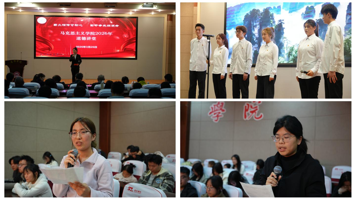 為深入弘揚(yáng)雷鋒精神,厚植家國(guó)情懷,激勵(lì)青年學(xué)子在新時(shí)代踐行初心使命,3月26日,馬克思主義學(xué)院舉辦“薪火相傳守初心 實(shí)干爭(zhēng)先擔(dān)使命”主題道德講堂。黨總支書記王霄飛、副院長(zhǎng)武永耿,全體教師及思政2024級(jí)、2025級(jí)全體學(xué)生參加活動(dòng)。