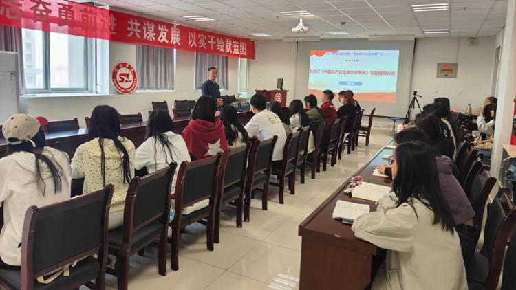 為進(jìn)一步規(guī)范組織生活,加強(qiáng)黨員和入黨積極分子黨性教育和黨紀(jì)黨規(guī)教育,推動(dòng)黨紀(jì)學(xué)習(xí)教育走深走實(shí),5月9日,經(jīng)濟(jì)管理學(xué)院黨委開展“黨組織書記講黨紀(jì)學(xué)習(xí)教育主題黨課”活動(dòng)。院黨委書記高擴(kuò)昌以《新修訂<中國(guó)共產(chǎn)黨紀(jì)律處分條例》>》為題為經(jīng)濟(jì)管理學(xué)院學(xué)生黨支部黨員、預(yù)備黨員、入黨積極分子講授專題黨課。