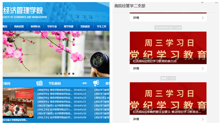 開設(shè)一個“黨紀學(xué)習(xí)教育”專欄。學(xué)院黨委按照黨紀學(xué)習(xí)教育方案部署,指導(dǎo)學(xué)院各宣傳媒體平臺開設(shè)“黨紀學(xué)習(xí)教育”專欄,經(jīng)濟管理學(xué)院網(wǎng)站開設(shè)“黨紀學(xué)習(xí)教育”專欄,已推送黨紀學(xué)習(xí)教育學(xué)習(xí)鏈接、學(xué)習(xí)卡片30余條;學(xué)院網(wǎng)站新聞報道學(xué)院黨紀學(xué)習(xí)教育專題新聞近10篇;各黨支部利用支部自媒體公眾號推送黨紀學(xué)習(xí)教育新聞報道50余次;學(xué)生第二黨支部微信公眾號平臺開設(shè)了黨紀學(xué)習(xí)教育“周三學(xué)習(xí)日”專欄,每周三定期發(fā)布學(xué)習(xí)內(nèi)容,深入發(fā)揮互聯(lián)網(wǎng)+黨建的育人功能與學(xué)習(xí)效應(yīng)。