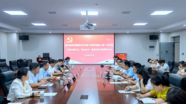 為促進基層黨支部優(yōu)勢互補、共同提高,提升基層黨組織建設水平,推動黨紀學習教育走深走實,根據學?;鶎狱h支部共建共聯活動安排,7月1日,機關一黨總支組織部統戰(zhàn)部聯合黨支部與生物學院教工第一、第二黨支部一同開展共過“政治生日”暨黨紀學習教育研討活動。組織部統戰(zhàn)部聯合黨支部書記張向東為全體黨員講授專題黨課。三個黨支部32名教工黨員參加活動?;顒佑缮飳W院黨委書記楊力主持。