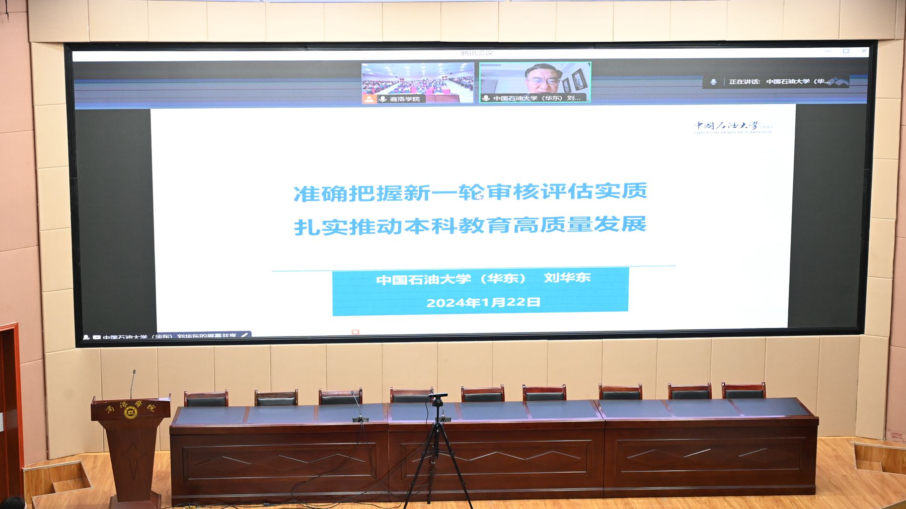 劉華東教授以《準(zhǔn)確把握新一輪審核評(píng)估實(shí)質(zhì) 扎實(shí)推動(dòng)本科教育高質(zhì)量發(fā)展》為題,從新一輪審核評(píng)估的新理念新要求新變化、需要重點(diǎn)關(guān)注的問題等方面,詳細(xì)介紹了新一輪本科教育教學(xué)審核評(píng)估工作的重大意義、基本原則和工作重點(diǎn)。