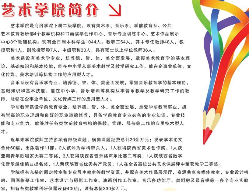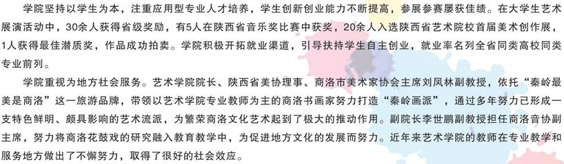 商洛學(xué)院是陜西省政府舉辦的全日制普通本科院校,坐落于著名作家賈平凹故鄉(xiāng)、陜東南生態(tài)園林城市——商洛市,其前身是成立于1976年的“陜西師范大學(xué)商洛專修科”,1984年經(jīng)陜西省人民政府批準(zhǔn)更名為“商洛師范??茖W(xué)?!?,2006年2月經(jīng)教育部批準(zhǔn)升格為本科院校。2011年起成為省市共建高校,2014年被省教育廳確定為向應(yīng)用技術(shù)大學(xué)轉(zhuǎn)型發(fā)展試點(diǎn)高校。