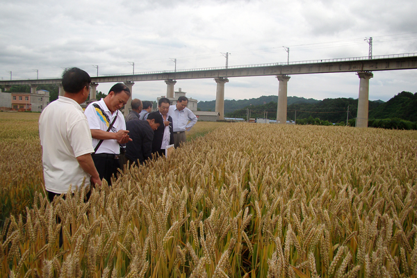5月28日,陜西省種子管理站研究員姚撐民,西北農(nóng)林科技大學(xué)農(nóng)學(xué)院小麥育種專家高翔、謝惠民教授,商洛市種子管理站副站長(zhǎng)賈振江、高級(jí)農(nóng)育師周龍等5位專家,對(duì)我校生物醫(yī)藥工程系高級(jí)實(shí)驗(yàn)師于浩世選育的小麥新品種“商麥1619”進(jìn)行了田間預(yù)審。校黨委副書記、院長(zhǎng)張景書接待了專家一行,并對(duì)我校小麥育種工作的開(kāi)展提出了具體要求