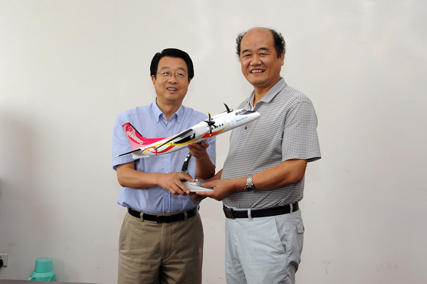 9月1日,西安飛機(jī)工業(yè)(集團(tuán))有限責(zé)任公司總經(jīng)理唐軍一行來我??疾旖涣?,院長劉建林接待了唐軍一行并進(jìn)行了座談