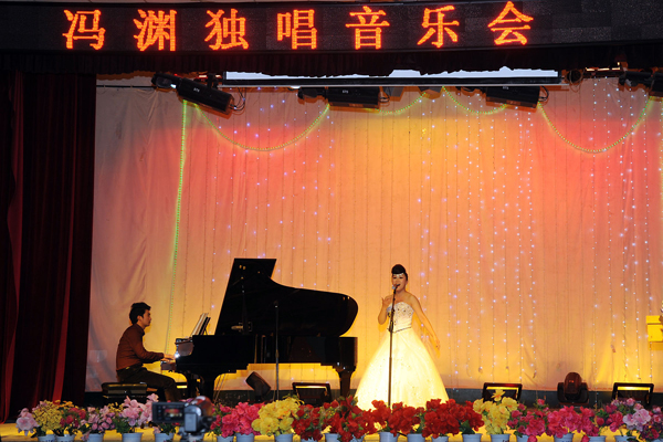 11月11日晚,由黨委宣傳部和藝術(shù)系聯(lián)合舉辦的馮淵獨唱音樂會在學(xué)校大學(xué)生活動中心隆重舉辦。藝術(shù)系青年教師馮淵為觀眾們激情演唱了《虞美人》《枉凝眉》《秦嶺里最美的地方是商洛》等16首經(jīng)典名曲。校黨委書記張景書、紀(jì)委書記王思懷、副院長魏書堂,商洛市委組織部副部長葉朝陽,市文聯(lián)黨組書記王良,市廣電局副局長、商洛電視臺臺長鞏文超,市音樂家協(xié)會主席林宏彥,市劇團團長李小彬等商洛文化藝術(shù)界人士、音樂愛好者,我校藝術(shù)系師生、“國培”學(xué)員代表共400余人共同聆聽了這場音樂盛宴