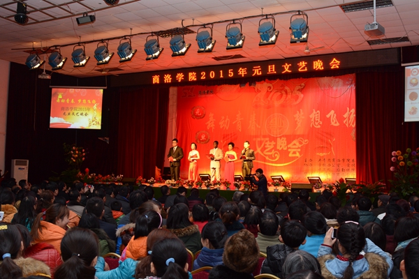 馬蹄留勝跡,羊毫譜新歌。12月30日晚,我校2015年度元旦文藝晚會在大學(xué)生活動中心隆重舉行。商洛市副市長劉榮賢,校黨委書記張景書、校長劉建林、黨委副書記左曉民、紀(jì)委書記王思懷、副校長魏書堂,商洛市教育局局長胡棟梁、共青團(tuán)商洛市委書記曹艷萍、商州區(qū)政府副區(qū)長楊俊芬,商洛供電局、中國銀行商洛分行、中國建設(shè)銀行商洛分行、中國郵政商洛分公司、中國移動商洛分公司、中國聯(lián)通商洛分公司、中國電信商洛分公司、商洛市劇團(tuán)、中國移動商州分公司有關(guān)領(lǐng)導(dǎo)同師生們一起觀看了演出